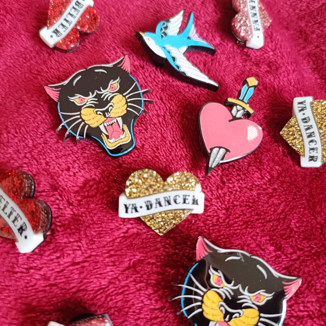 These are laser cut on black acrylic, hand painted then sealed with UV resin.