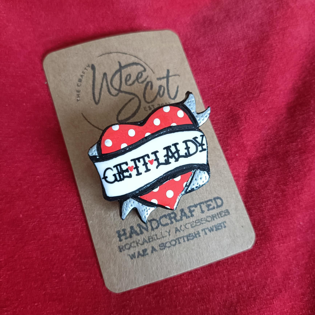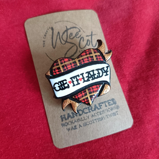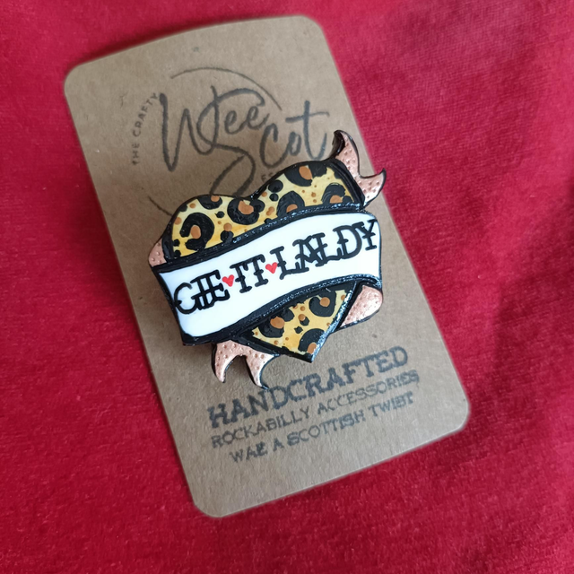 This wee 4 x 4.5cm polymer clay brooch is hand crafted, painted in acrylic and then Varnished to help with wear. Finished with a silver plated brooch back.