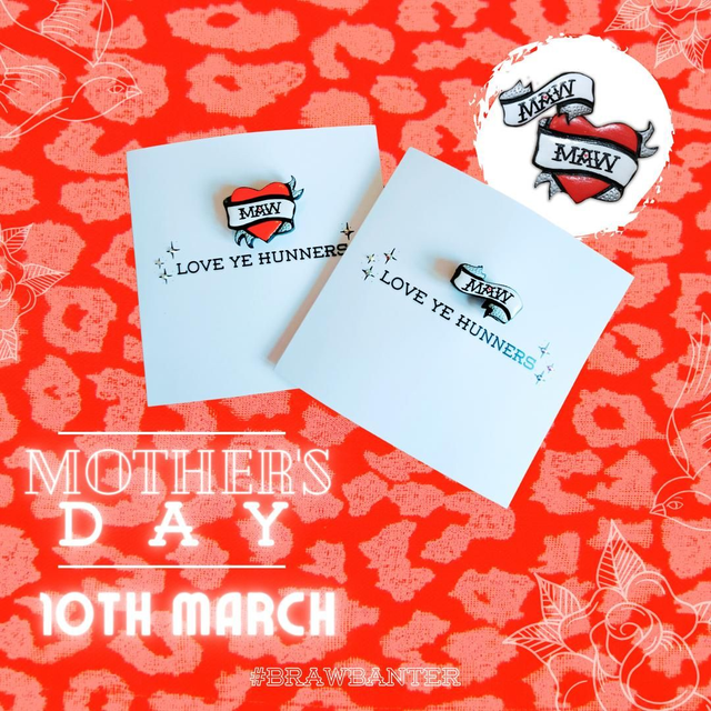 Both options have one of our wee polymer clay creations on them wae the classic Scottish word for mum.
