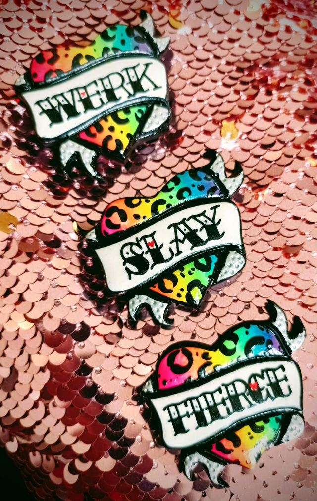 Only availabile tae the end ae June, these rainbow beauties add sass whilst donating some goodness tae charity. With 20% of each badge sold going tae LBGT Youth Scotland.