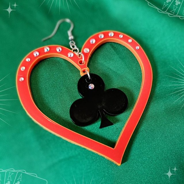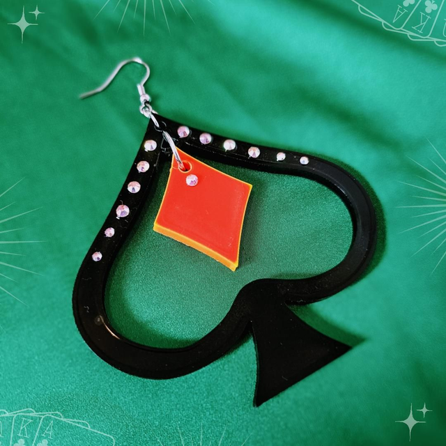 Show off your inner gambler with these statement earrings. Super light weight and made with nickle free hypoallergenic earrings hoop.