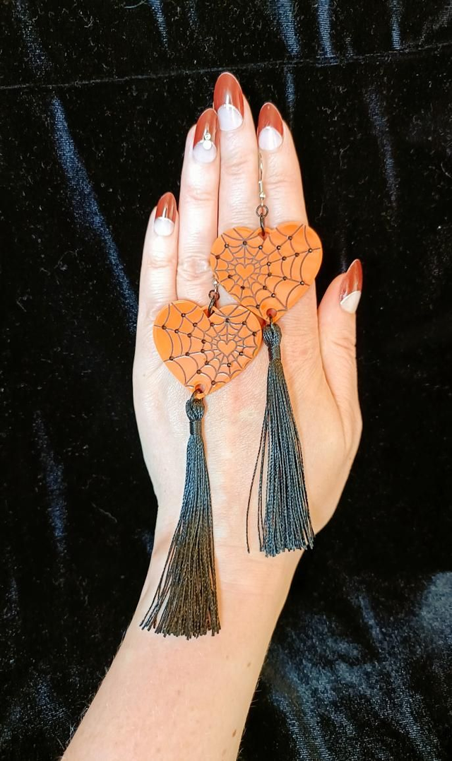 A acrylic heart with a total Drop 12cm x 4cm. Cut in house and painted with acrylics then finished off with some black rhinestones for extra sparkle. With a hypoallergenic and nickel free fish hook findings.